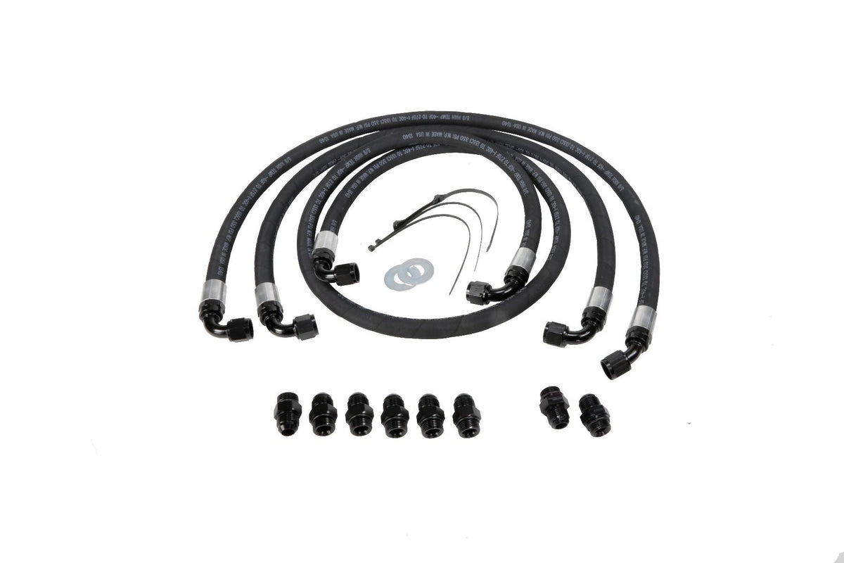 Replace your leaking transmission lines with our heavy duty, high flow, flexible transmission lines. Our kit is the most complete replacement transmission line kit available for your LBZ or LMM truck!  It includes all of the necessary fittings whether your truck is running a stock radiator or Setrab equipped radiator.