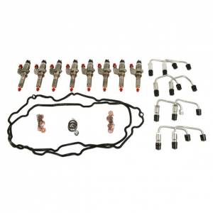 We put together an affordable package to refresh the fuel system on your 2001-2004 LB7. This kit comes with certified reman Bosch injectors, all 8 fuel injector lines and two valve cover gasket kits with o-rings and clips.