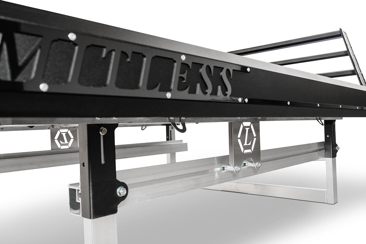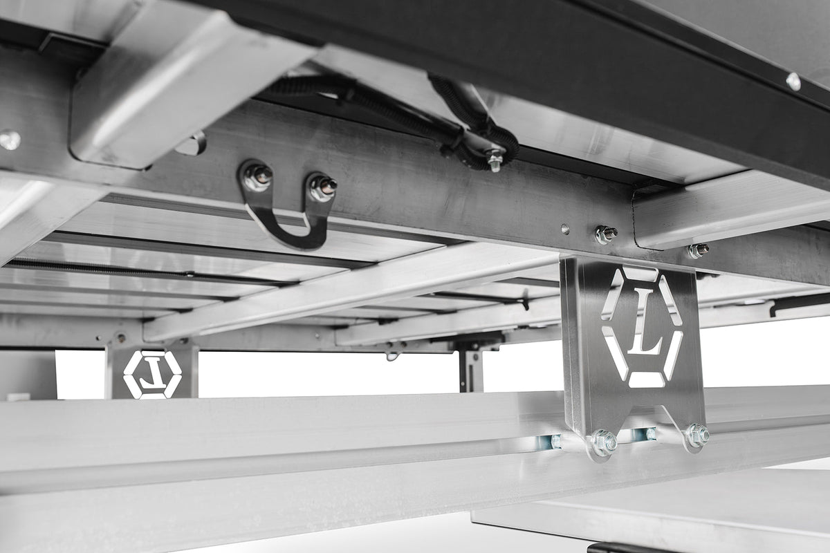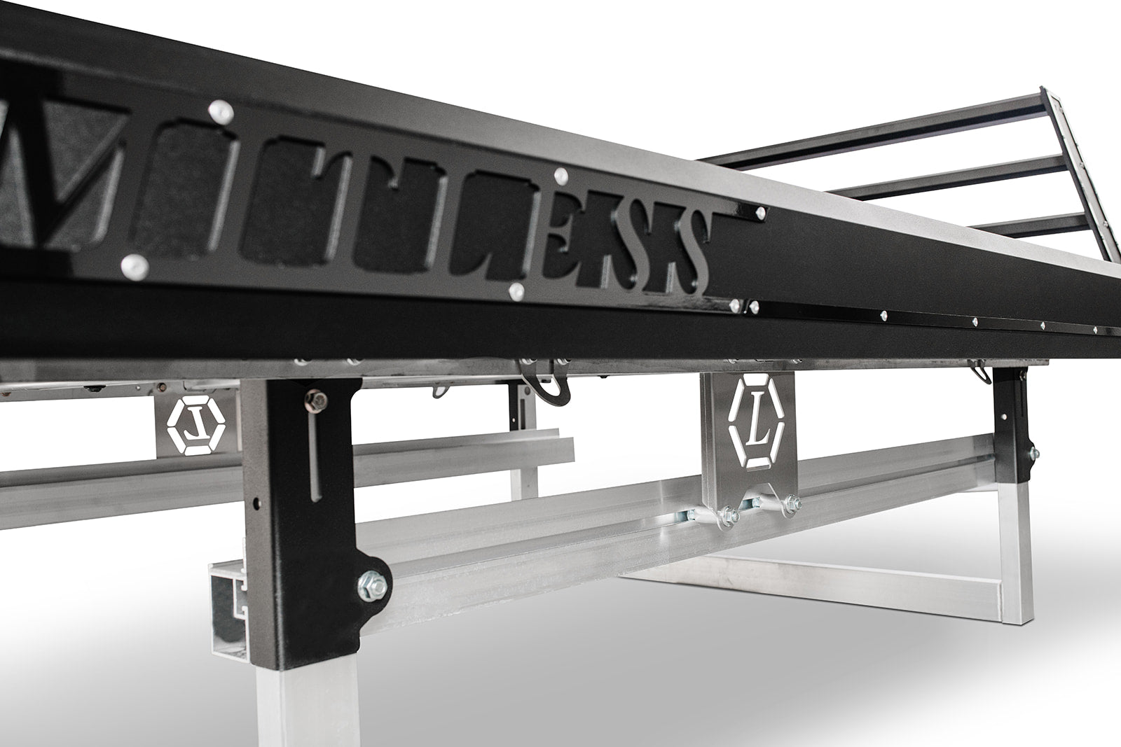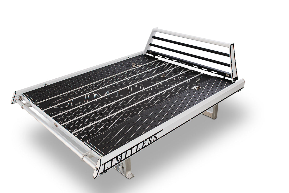 Top-quality sled & ATV decks come complete with everything you need to keep on trucking, with a 10’9” x 50” telescoping ramp, 8 heavy-duty stainless steel tie-down points, 3 Superclamp hooks, and aluminum frame rails. High-density multi-colour sheeting and 16 smoked lens LED lights enhance your look, and its easily expanded width (up to 8’1” usable space) make it endlessly adaptable. Available in sleek black or stylish white, every deck comes with all installation hardware included, along with the Limitless promise of unmatched quality and durability.