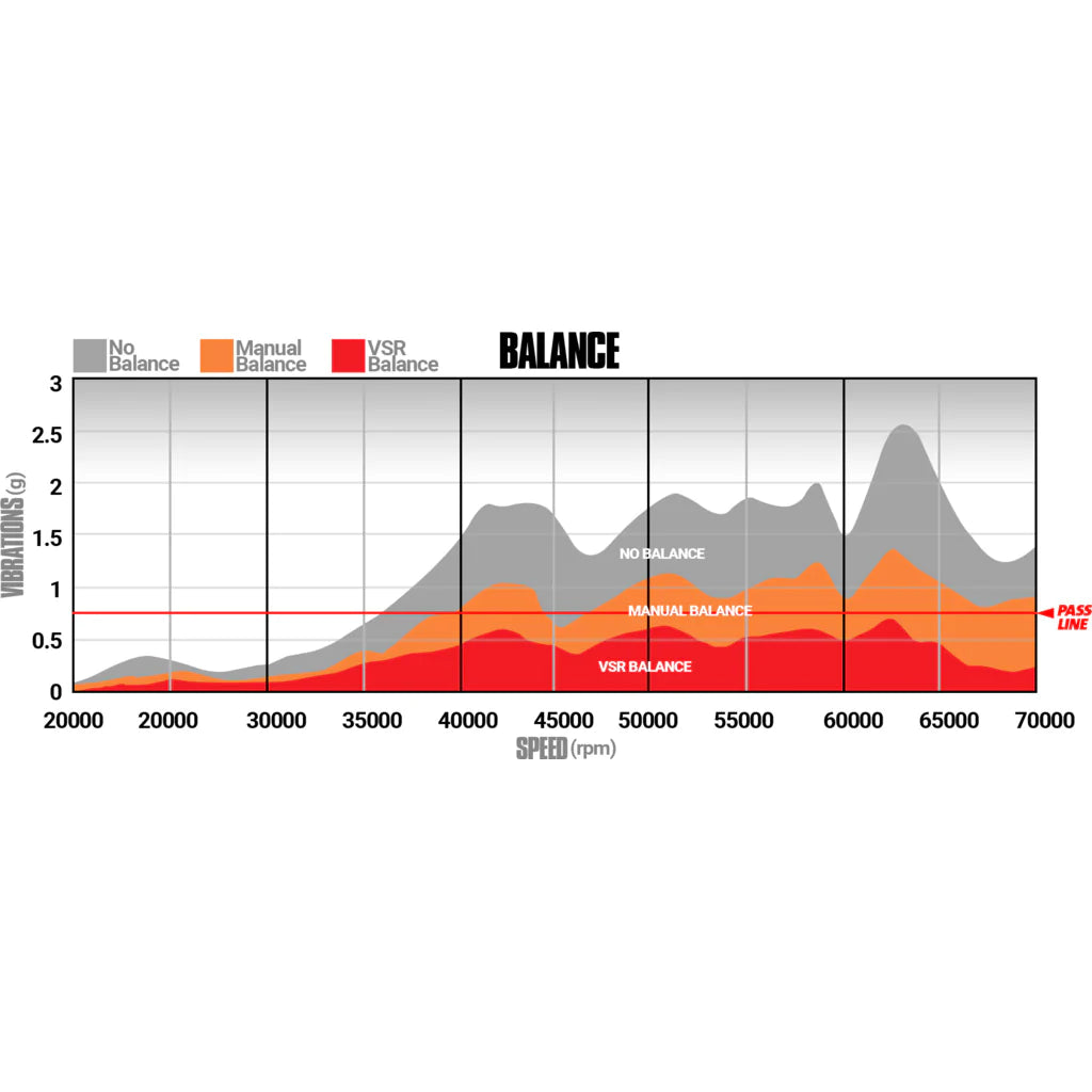 - Ballistic Billet 64.5mm 7+7 blade compressor wheel and Low MOI QST 70mm 12 blade turbine wheel